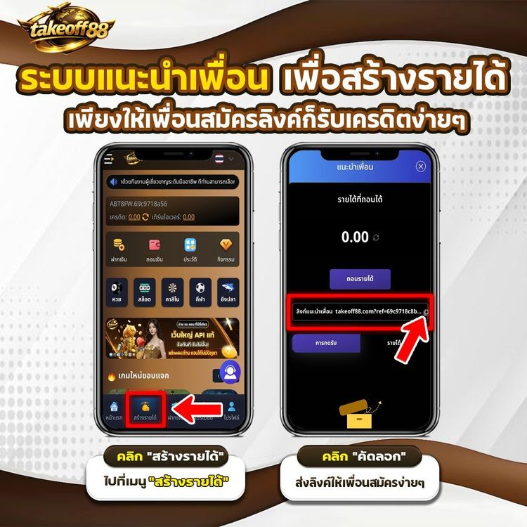 takeoff88 ไม่เพียงแต่เป็นเว็บพนันออนไลน์ที่ให้บริการเกมเดิมพันหลากหลาย แต่ยังมอบโอกาสพิเศษให้สมาชิกสร้างรายได้เสริมผ่านโปรแกรมแนะนำเพื่อน ซึ่งเป็นช่องทางที่น่าสนใจสำหรับผู้ที่ต้องการหารายได้เพิ่มเติม โดยไม่จำเป็นต้องลงทุนอะไรมากนัก